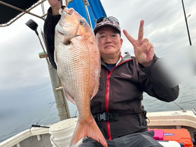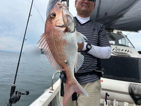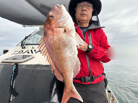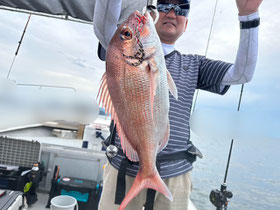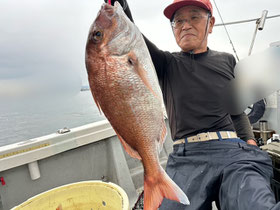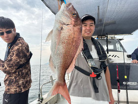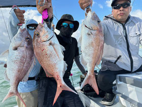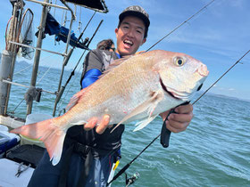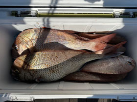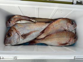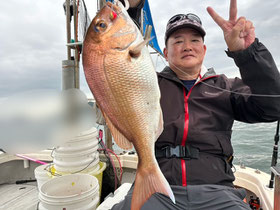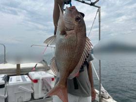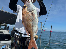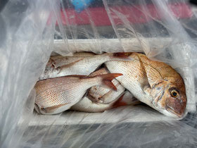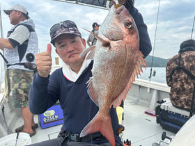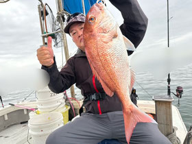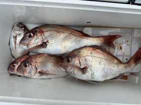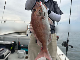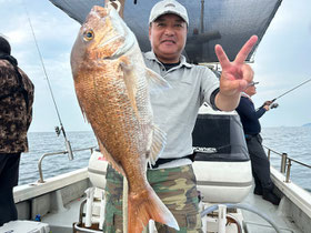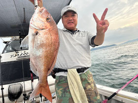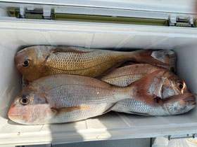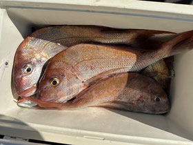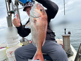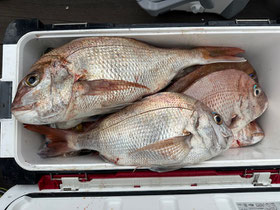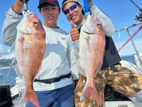 朝からバタバタと良型真鯛が釣れ9時にはツヌケたお客さんも。