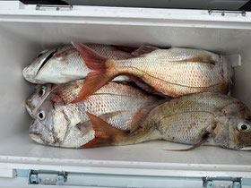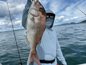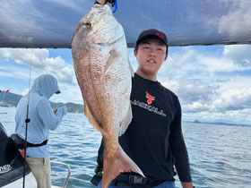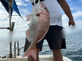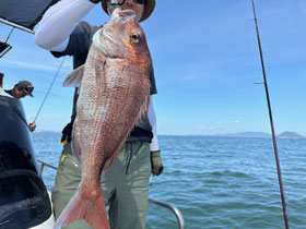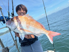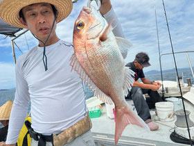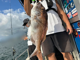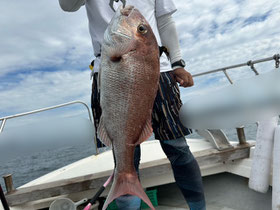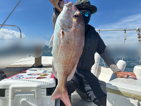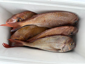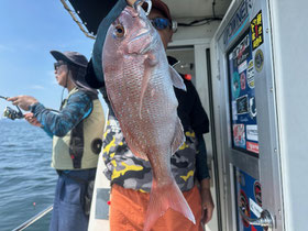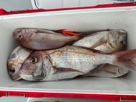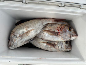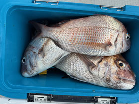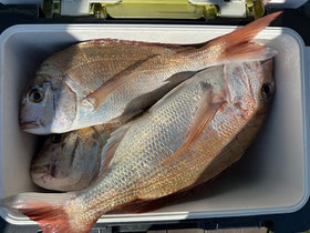 みなさん朝からバタバタと良型真鯛を釣ってくれます。