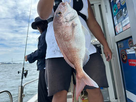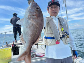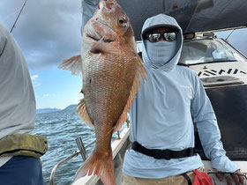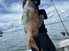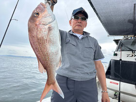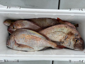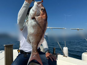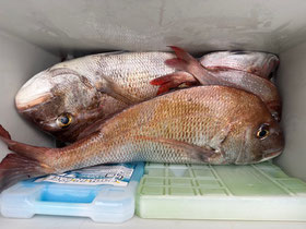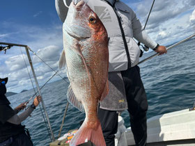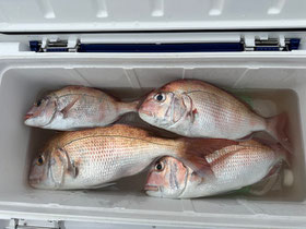 潮が返してからもポロポロ釣れ、みなさん良型真鯛を釣ってくれました。