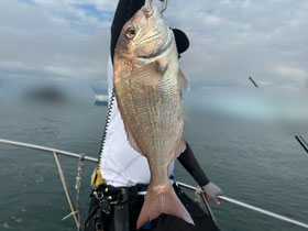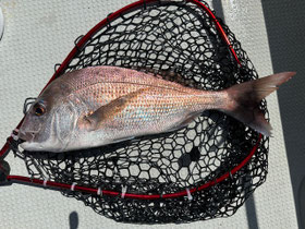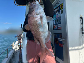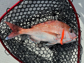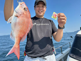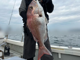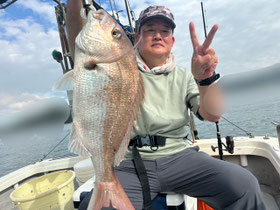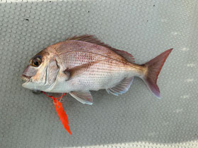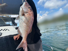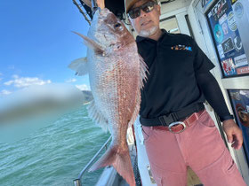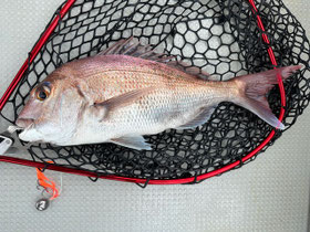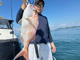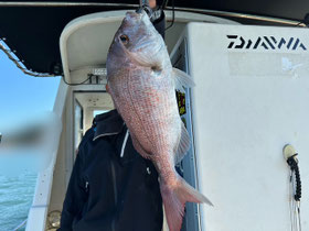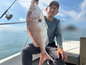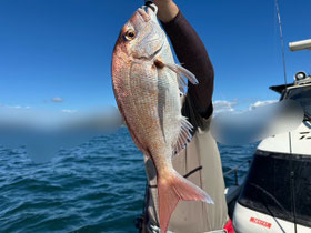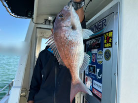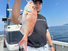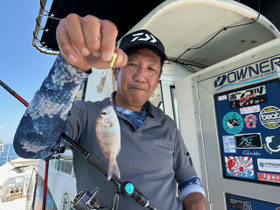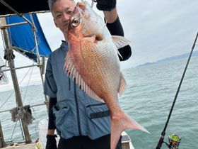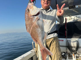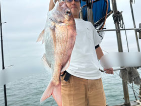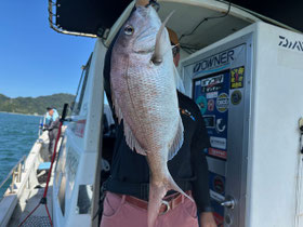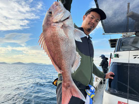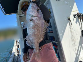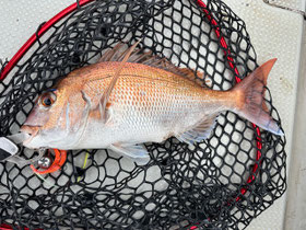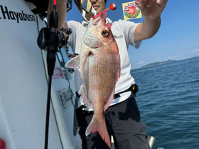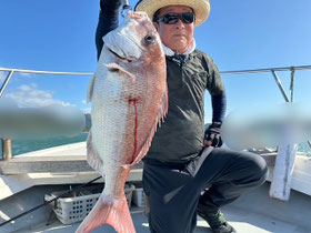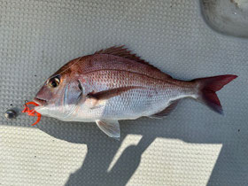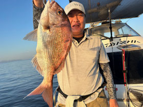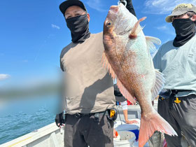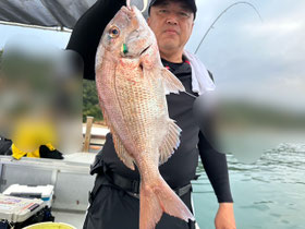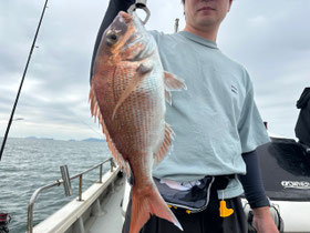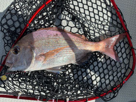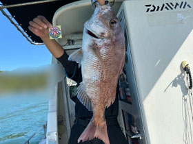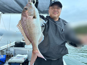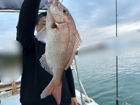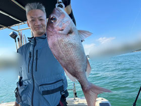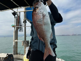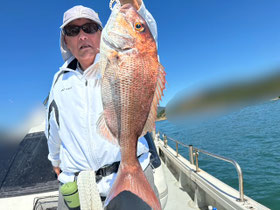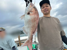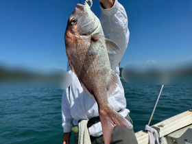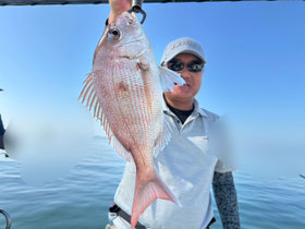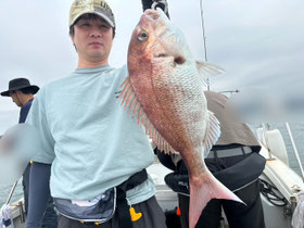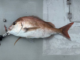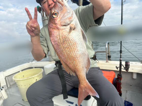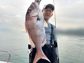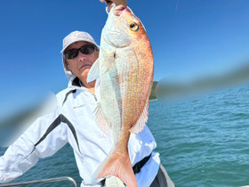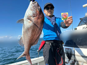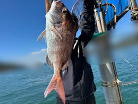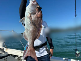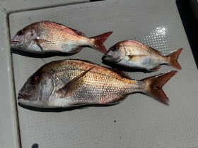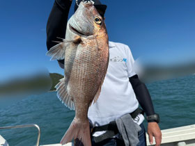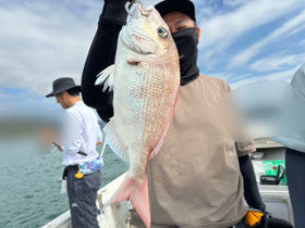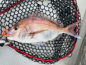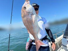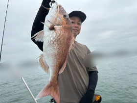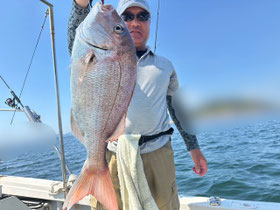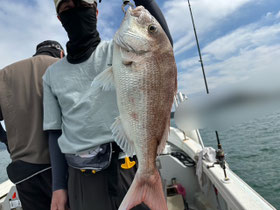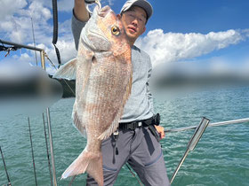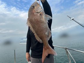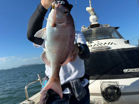 潮が返してから4mぐらいのドシャローへ行って浅場の真鯛のひきを楽しんでもらいました。