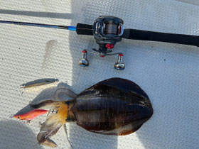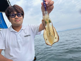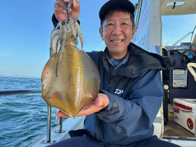 伴さんはティップランで船長数年ぶりに船アオリ。