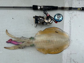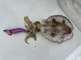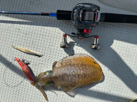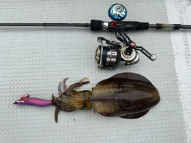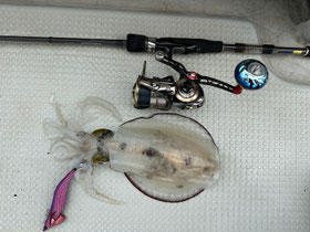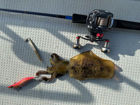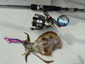 Kくんも初ティップランで何とかアオリイカGETしました。