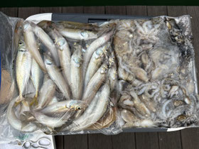 イイダコのトップが60匹オーバーで、キスは短時間で45匹でかなり釣れました。