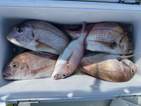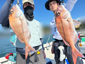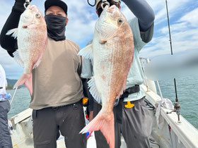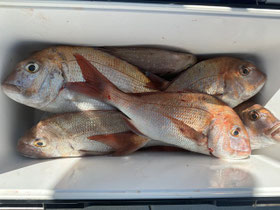 あんまり浅場は難しいので20m前後でやってみました、みなさん良型真鯛をバタバタと釣ってくれます。