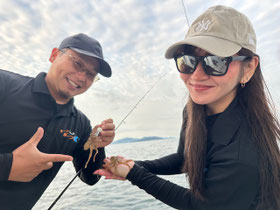 一つテンヤでもタイラバでも好きな方をしてもらいましたが、どっちも同じぐらい釣れましたねぇ。